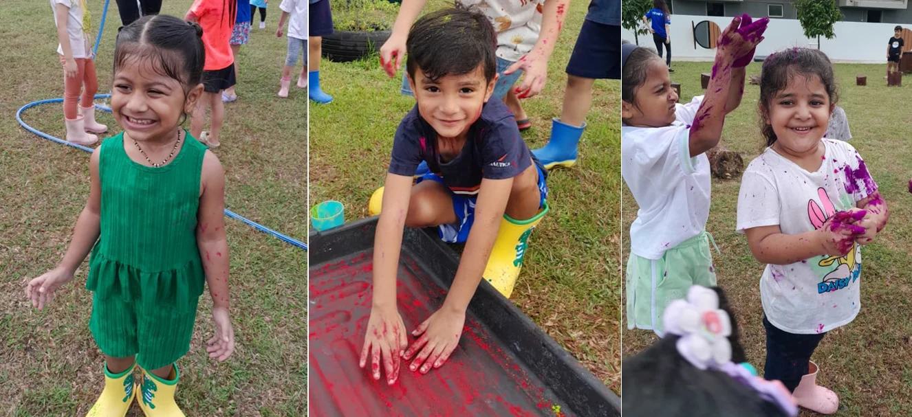 Our Early Years children enjoyed a vibrant BIG mess session as they learned about the Holi Festival, a celebration filled with colour, joy, and community.The children began the activity with an energetic game of tug of war, encouraging active participation. This was followed by lots of excitement as they explored colouredpowders, splashing and sprinklingcolours onto each other in the true spirit of Holi. Some even choseto applycoloursto their hands and faces, fully immersing themselves in the festive experience.This hands-on activityoffered rich opportunities for sensory exploration, physical movement, and cultural learning. The space buzzed with laughter as they embraced the joy of expressing themselves through play. What a memorable and enriching experience for our young learners!